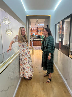 Carolina: Then you will see where I come from. But, you know, for me, it was about learning and respecting the traditions but finding a way to make them fresher and more relevant and more contemporary. Letting them have a life and not just dying out because we're just stuck in this one way street. So that was my personal drive from the beginning, but driven very selfishly. And by that I mean I wanted to make cool jewelry that I wanted to wear. Because what I had, I felt, was beautiful but traditional, a bit boring. I was not allowed to wear the fun stuff because it wasn't real. So I needed to find my own way. It's still true today. I still design pieces because I want them. I dreamed them up for myself and I created them, and I made them. And then luckily people like them. (laughs) I think that's a gut feeling. I've been working with my jewelers for many years. I’m very lucky, because having our own production, I developed that relationship and so they understand already in advance. “You're not gonna like that so I'll just melt it and start it again”. But it needs to come from within. Otherwise you're just creating products to fill a gap in a spreadsheet or in the market and maybe that works commercially, but it's not fun. Over time, the biggest compliment that I get is when people recognize my piece without seeing the box, the signature, or the stamp or anything. That is, to me, a job done. Seeing it on other people makes me happy. It is all about gut feeling. Whether it's opening a store or creating packaging, there is no rule. So it's about why: Why Motcomb Street, why that color, why...