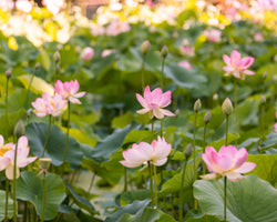 Walska found her great purpose in her 60s, when she saw the tides of Europe turning towards war and in 1941 purchased the Montecito estate that would become Lotusland at the request of a young and handsome Hatha yoga-promoting charlatan named Theos Bernard, to whom she was married for three tempestuous years (because, she claimed, she felt sorry for him, which is a surprisingly frequent excuse in her marriages) before wising up. She immediately began to renovate its grounds. At first they called the estate “Tibetland,” and intended to use it to host Tibetan monks until the outbreak of WWII made that impossible. After divorcing Bernard, she replaced the swimming pool with a water garden, where now every summer blooms hundreds of pink Asian lotuses: the estate was then named “Lotusland.” The lotus has been a sacred symbol across history for the people of Egypt, India, and Asia in general, and is celebrated for an annual emergence widely interpreted as a symbol of renewal and growth, where it reaches from the mud into the open skies. It could not have felt like a more perfect emblem for Walska.