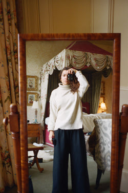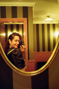 Lily Bertrand-Webb’s studio is filled to the brim with folders of her archive collections. An impressive array of broken cameras and lots, and lots of photographs. In a photo of herself, in which she couldn't have been more than 3 years old, she’s holding her godfather’s camera and taking pictures. Another self-portrait is displayed in a lightbox that had recently been shown at the Timothy Taylor Gallery. Taken over lockdown, a difficult time in her life, she now finds it uncomfortable to look at.