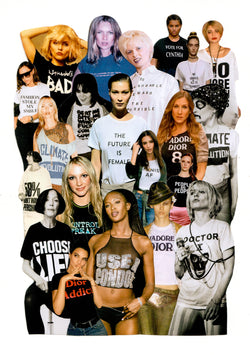 In any city, the merging of words with clothing or jewelry is ubiquitous. Walk anywhere in New York to London to Paris, and you’ll see a bevy of It girls strolling around with charms dangling from their wrists or gilded initials strewn across their necks — or a statement on their shirt. Wearing a word, a letter or phrase is the ultimate — most direct — and sometimes even beloved form of sartorial expression. Whether it is a bold allegiance to a brand, a political message scrawled across the chest, or even a heart-felt ode to someone special engraved on a ring, the physical piece of clothing or a piece of jewelry becomes a vehicle for articulation.