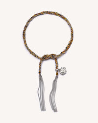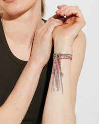 Art of wishes Silver lucky bracelet, tied with silver courage charm on white background Art of wishes Silver lucky bracelets collection, presented on model's wrist