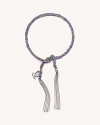 Art of wishes Silver lucky bracelet, tied with silver hope charm on white background Art of wishes Silver lucky bracelets collection, with silver magic, hope and courage charm wrapped around blue velvet cushion on white background