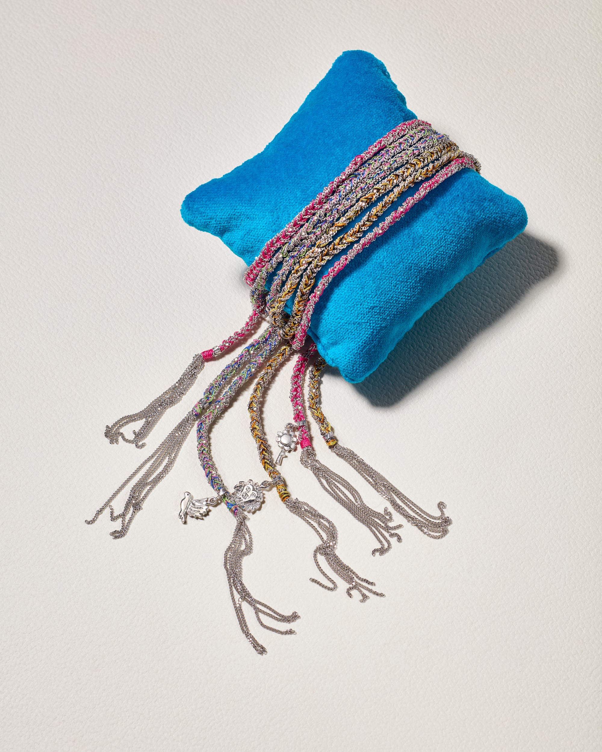 “The Lucky bracelet was the starting point of my brand,” she says. “At that time, the concept of spiritual or emotional jewellery did not exist in the world of fine jewellery. The Lucky bracelet combines precious gold with silk, and there is no clasp: instead, it is tied onto the wrist with a double knot. My vision was always that the wearer would make a wish as the bracelet was tied, and that spirit seemed to resonate with our clients.”