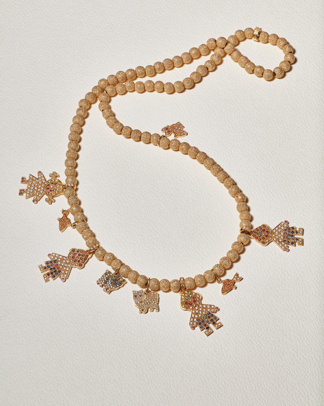 Carolina was inspired by the birth of two sons to create a range of 18k gold pendants to symbolise one's family. Designed in a custom pavé of precious stones, these pendants combine whimsical spirit with classic fine jewellery techniques.