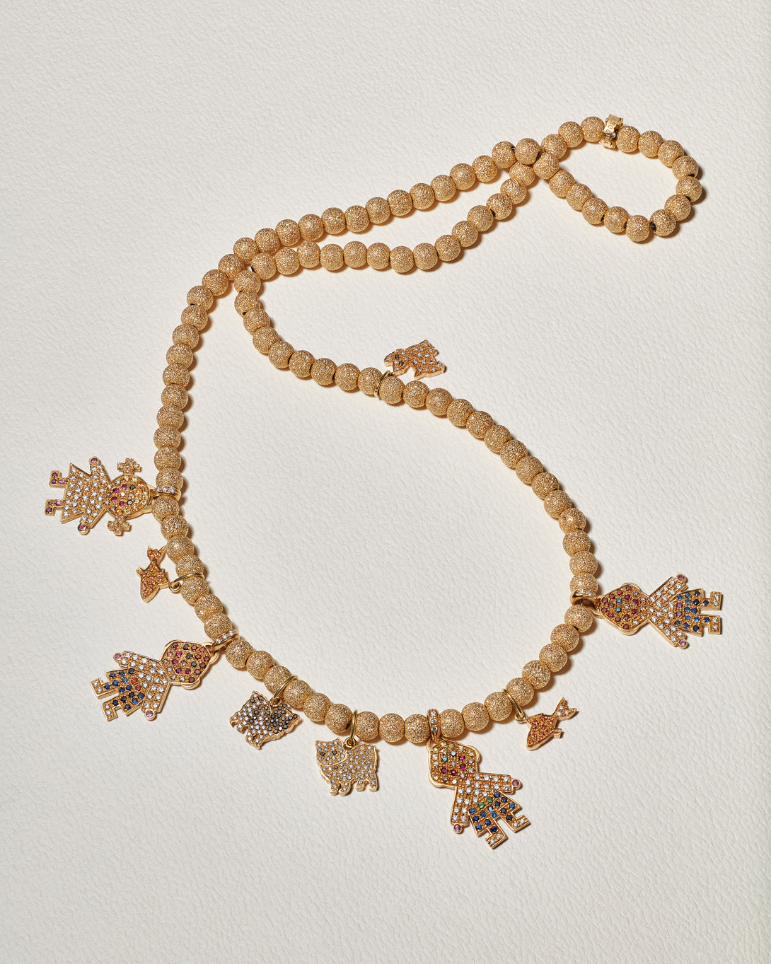 With our Family and Bambini necklaces, Carolina was inspired by the birth of her first child to create a range of 18k Gold pendants to symbolise one's family. Designed with a pavé finish, these pendants combine whimsical spirit with classic fine jewellery techniques.