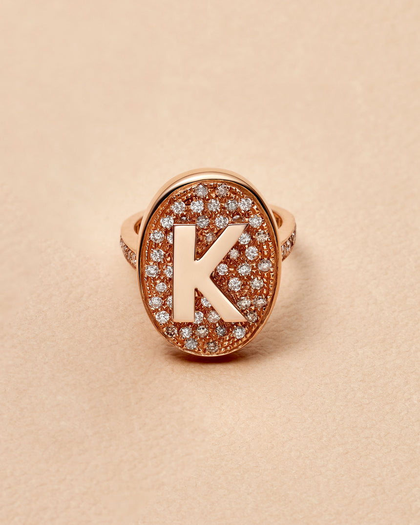 Initial rings are made-to-order with the initial and finish of your choice: all gold, labradorite table, pavé table in various combinations of precious stones, shiny letter, pavé letter...
