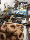 In our Atelier, every Wednesday at 4pm, all tools are put down for jeweller Lorenzo to make his word class doughnuts on the same burner where gold is normally melted.