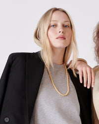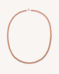 Our long beaded necklace features Florentine Finish 18k gold beads strung on an 18k gold chain. The beads are irregularly spaced to allow for movement and visibility of the chain.