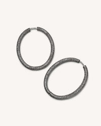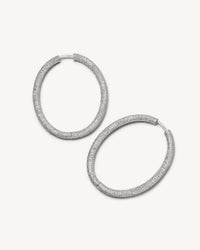 A pair of large oval hoops made from 18k gold in our signature Florentine Finish.