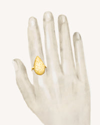 Our pear cut ring is made from 18k gold in our signature Florentine Finish, and is approximately 3cm tall.