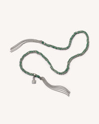 It is approximately 34cm, including 4.5cm long tassels on either end. Meant to be worn alone or layered — or mixed-and-matched with our 1885 Links to create new combinations.