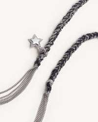 This Lucky bracelet features an 18k gold diamond-cut chain, hand-braided with black silk and finished with a star charm symbolising Health.