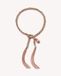 This Lucky bracelet features an 18k gold diamond-cut chain, hand-braided with sage silk and finished with a scarab charm symbolising Strength.
