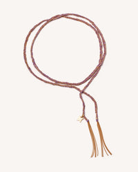 It is approximately 95cm, including 4.5cm long tassels on either end. Meant to be worn alone or layered — as a necklace or a wrap bracelet — with one of our pendants or 1885 Links.