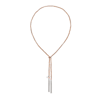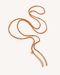 It is approximately 95cm, including 4.5cm long tassels on either end. Meant to be worn alone or layered — as a necklace or a wrap bracelet — with one of our pendants or 1885 Links.