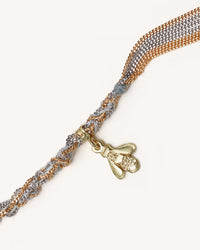 This Lucky necklace features an 18k gold diamond-cut chain, hand-braided a two-tone combination and finished with a bee charm symbolising Virtue.