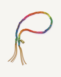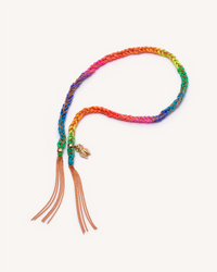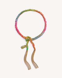 Please note that each piece is made by hand, resulting in slight variations in length. Each bracelet may appear different in tone due to the multicoloured silk used.