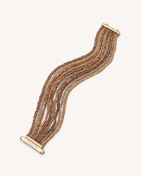 This bracelet features 9 Lucky strands made from 18k gold diamond-cut chains, hand-braided with set combinations of silk and finished with a two-pronged clasp. It is approximately 17cm long and can be made to your desired length if required.