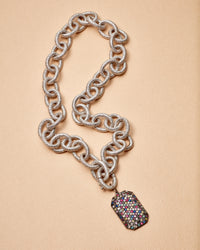 An emerald cut pendant made from 18k Gold in either Mix or Opal combinations of precious stones. This piece is approximately 2.75cm tall and is meant to be worn with any of our classic chains, Discoball necklaces, FORTE Beads necklaces or Lucky necklaces.