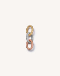 These three links come in our signature Florentine Finish 18k gold, where the touch of a diamond-tipped hammer adds texture to the otherwise even gold surface. A matte finish shifts to a sparkle as the small indentations hit the light.