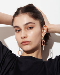 These 18k gold earrings come with removeable links. They are approximately 8cm long with links, and 3cm long without.