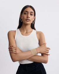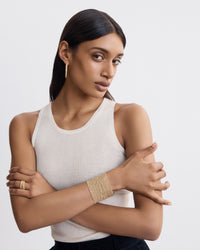 This bracelet is made from threads of 18k gold woven on a centuries-old Florentine loom. It is 6cm wide and will be made-to-measure to your desired wrist size. Also available in any combination of 18k yellow, white, pink and black gold.
