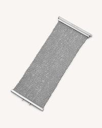 We are more than happy to clean Woven pieces at one of our stores. We do not recommend the cleaning of jewellery with treated polishing cloths or brushes. Do not machine wash, tumble dry or iron. Whilst our Woven pieces show great flexibility thanks to their fabric-like quality, they remain delicate pieces of fine jewellery and should be treated as such. They are best stored in their original pouch and shouldn’t be kept underneath anything heavy, including other jewellery. With time, if worn daily, the silk could eventually deteriorate as it is a natural fibre. Avoid contact with perfume, cleaning products and other chemicals that may discolour your bracelet or scarf. Should a silk thread or an 18k gold chain break, the entire piece would need to be taken apart and remade at a fee. The clasp of our Woven bracelets should be used with care. The side where the logo is engraved has two buttons on each end. They should be pressed simultaneously to allow the two ‘teeth’, on the other end of the clasp, to slide in smoothly. Forcing the ‘teeth’ inside the clasp will weaken its spring mechanism. The same applies when removing the bracelet: the two buttons must be fully pressed before releasing the other end of the clasp.