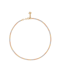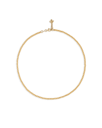 Tiny gold beads have been laser-faceted and strung on a fine chain to achieve the light finish of our Discoball choker. Crafted from 18k gold, this piece is 35cm long and can be worn as a necklace with one of our pendants (or two), or a double-wrap bracelet.