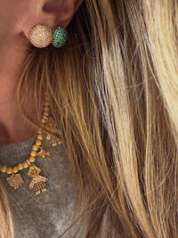 The EveryDay stud earrings are full of wishes just like our Lucky collection. Handmade in 18k gold in our atelier in Florence, each earring features a pavé of brilliant-cut precious stones, each one representing one of 13 wishes. Each wish is engraved on the signature EveryDay braid detail on the back in brushed 18k yellow gold.