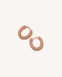Oval huggy earrings with a hook closure, made from 18k Gold in our signature Florentine Finish. These earrings are approximately 1.4cm long.