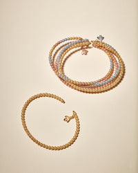 This Open Beaded bracelet is made from tiny 18k Gold beads in our signature Florentine Finish. Designed to slip effortlessly onto your wrist, it can be worn alone or stacked.