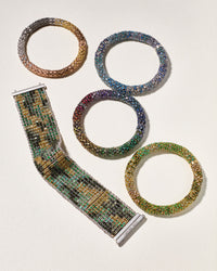 Twister Luxe is our take on the classic tennis bracelet. Up to 90 rondelles are strung on a spring, itself encasing an 18k gold chain. Each rondelle is made of five plates in our signature Florentine Finish. Our Florentine Finish creates a delicate hammered look and adds texture to the otherwise even gold surface. A matte finish shifts to a sparkle as the small indentations hit the light. This piece does not have a clasp and slips over your wrist. Stack it or layer it with other Carolina Bucci bracelets. Once you have placed your order, a member of our Customer Service team will be in touch to confirm the size and fit of your bracelet.