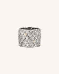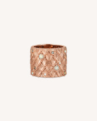 A 2cm-high 18k gold ring with mother-of-pearl, opals and white diamonds.