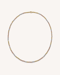 Tiny gold beads have been laser-faceted and strung on a fine chain to achieve the light finish of our short Discoball necklace. Crafted from 18k Gold, this piece is 40cm long and can be worn alone or layered — and with one of our pendants (or two).
